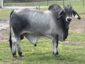 BW 64 lbs., EPSs at Registration: BW -0.8, WW 12, YW 27, Milk 6, CW 24, MB 3.56. Dark pigmented bull from one of our strongest cow lines. He traces back on the bottom side to our BB MS SUGAR 511 who produced 5 keeper heifers in our herd where 4 are still producing. His dam 711 has produced a Herd Bull as well.